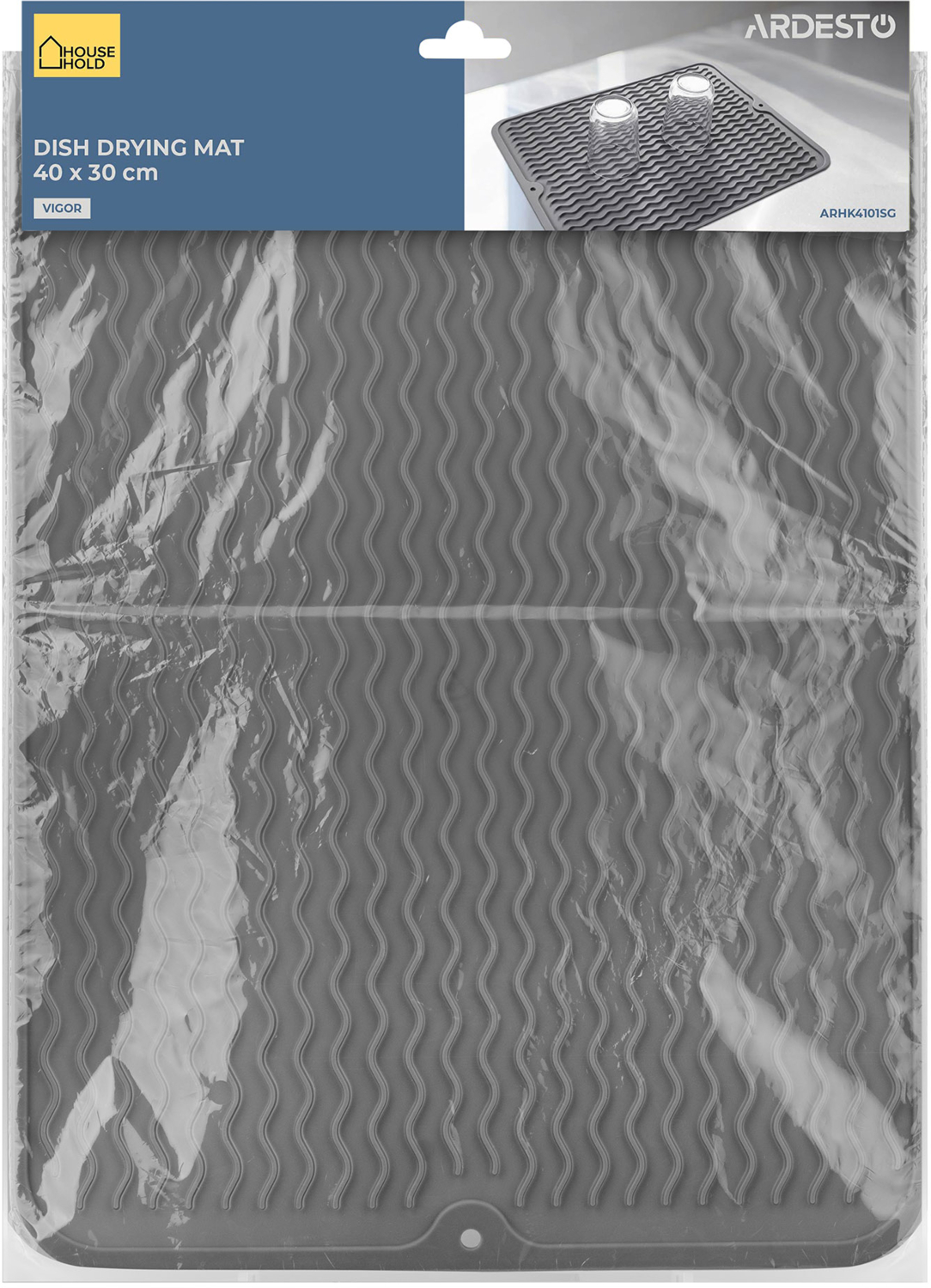 - Килимок для сушіння посуду ARDESTO Vigor 40х30см, силікон, сірий (ARHK4101SG)