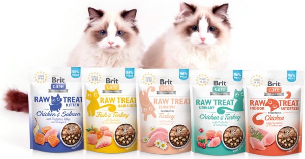 Brit Raw Treat можна використовувати, як смачні ласощі, які так люблять коти, а також, як універсальні добавки, що урізноманітнюють щоденну їжу улюбленців, надаючи їй додаткового смаку та поживних речовин, і роблячи час приймання їжі цікавим і корисним для здоров'я.