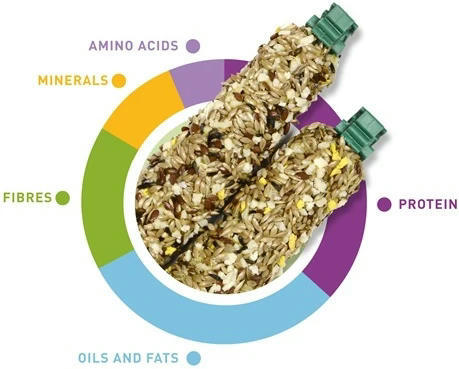 Хрусткі запечені палички з яйцями, амінокислотами та подрібненою мушлею для доповнення основного раціону птахів. Зафіксуйте паличку в клітці птаха за допомогою фіксатора, щоб канарки могли їсти їх за бажанням.