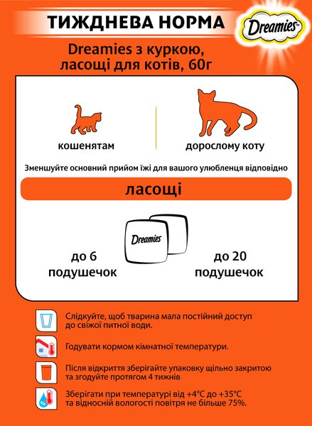 - Ласощі для котів Dreamies з куркою 6*60г
