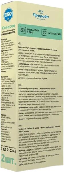 Ласощі для папуг Природа Колосок Лугові трави 140г