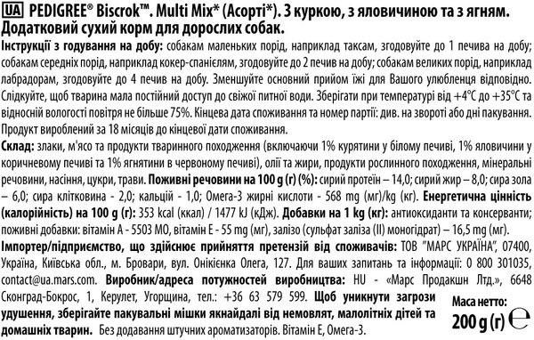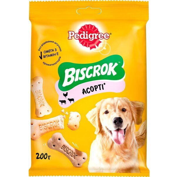 Ласощі для собак Pedigree BISCROK з куркою, яловичиною та ягням 200 Г