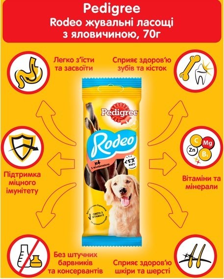 Схожі товари Ласощі для собак Pedigree Rodeo с яловичиною 20*70г