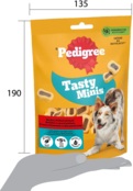 Це серія апетитних ласощів Pedigree для собак, які мають різні форми та смаки. Вони ідеально підходять для великих і маленьких собак і є чудовим способом побалувати вашого улюбленця. Pedigree Tasty Minis містять омега-3, вітаміни та мінерали, а також не містять штучних барвників та ароматизаторів, тому ви можете бути впевнені в їхній якості так само як і ваша собака!