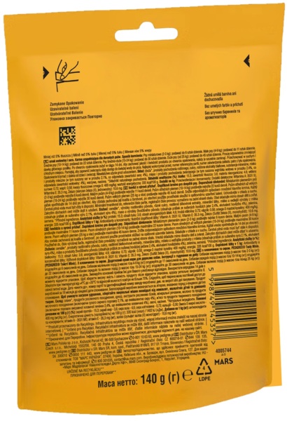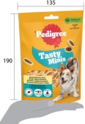 Це серія апетитних ласощів Pedigree для собак, які мають різні форми та смаки. Вони ідеально підходять для великих і маленьких собак і є чудовим способом побалувати вашого улюбленця. Pedigree Tasty Minis містять омега-3, вітаміни та мінерали, а також не містять штучних барвників та ароматизаторів, тому ви можете бути впевнені в їхній якості так само як і ваша собака!