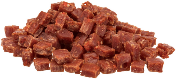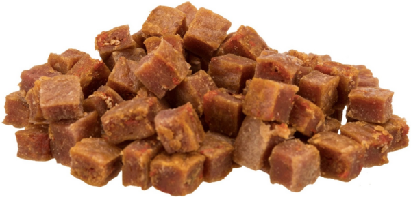 | Склад | М'ясо (курка, качка, яловичина, ягнятина) 87%, ягоди 3%, гліцерин, картопляний крохмаль, гороховий білок, мінеральні добавки |