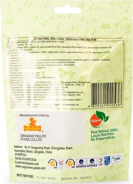 - Ласощі для собак Yalute Salmon Fillets філе лосося 100г