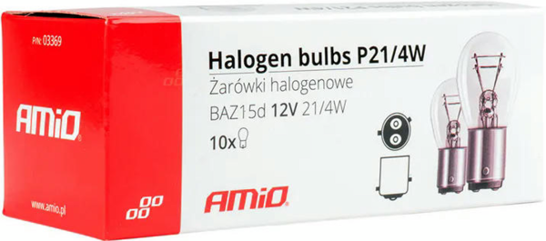 Лампа Amio галогенова P21/4W 12V BAZ15d 10 шт 03369