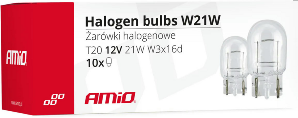 Лампа Amio галогенова T20 W21W W3x16d 12V 10 шт 02551