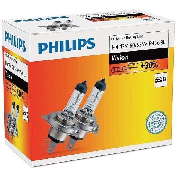 60/55 Вт Лампи Vision забезпечують довший промінь світла, ніж у звичайних ламп Наші лампи випромінюють максимально потужний направлене світло. Ми завжди пропонуємо тільки кращі і найефективніші світлові рішення, адже ми знаємо, що одного разу завдяки якості наших ламп вдасться врятувати чиєсь життя. Безпека на дорозі залежить від того, наскільки добре видно вас, і як добре ви бачите інших Освітлення – найважливіша умова безпечного водіння і головний фактор, який дійсно допомагає уникнути нещасних випадків. Мета Philips – поліпшити загальну видимість і освітленість на дорогах. Таким чином ми робимо свій внесок у підвищення безпеки дорожнього руху та запобігання нещасних випадків. Philips – вибір більшості провідних автовиробників Вже протягом 100 Років компанія Philips залишається лідером в сфері автомобільного освітлення, впроваджуючи технологічні інновації, які згодом стають стандартом для всієї галузі. Сьогодні кожен другий автомобіль в Європі і кожен третій в світі оснащені світловим обладнанням Philips. З метою безпеки замінюйте лампи обох фар одночасно Для симетричного освітлення настійно рекомендуємо міняти ці лампи парами Широкий вибір ламп 12 В для всіх варіантів використання Де використовувати лампу на 12 В? Рішення Philips Automotive задовольнять всі потреби автомобілістів: дальнє світло, ближнє світло, передні протитуманні фари, передні і бічні покажчики повороту, задні покажчики повороту, стоп-сигнали, ліхтарі заднього ходу, задні протитуманні ліхтарі, освітлення номерного знака, задні габаритні/стоянкові ліхтарі, освітлення салону. Автомобільні лампи Philips виробляються з високоякісного кварцового скла Кварцові скло, стійке до УФ-випромінювання, володіє більш високою міцністю (в порівнянні з тугоплавким склом) і відрізняється високою стійкістю до перепадів температур і вібрації, що виключає можливість вибуху. Лампи Philips з кварцового скла (нитка розжарення 2650 ºC і скло 800 ºC) здатні витримати різкі коливання температури. Лампи витримують високий внутрішній тиск, тому таке кварцове скло забезпечує більш потужне світло Автомобільні лампи Philips відрізняються високим рівнем водонепроникності Тільки лампа з кварцового скла (нитка розжарення 2650° C, скло 800° C) може у включеному стані протистояти різких перепадів температури: наприклад, при попаданні краплі холодної води на гарячу лампу, що може статися, якщо ви проїжджаєте по воді зі зламаним корпусом фари. Удостоєний нагород виробник автомобільних ламп Наші лампи часто отримують нагороди від експертів в автомобільній галузі. Автомобільні лампи Philips відрізняються високою стійкістю до УФ-випромінювання Спеціальне розроблене Philips покриття оберігає фари від шкідливого ультрафіолетового випромінювання, що робить кварцове скло Philips ідеальним варіантом для всіх умов водіння і гарантує його довговічність. Ми дотримуємося високих стандартів якості, встановлені нормами ECE Philips виробляє кращу в своєму класі автомобільну продукцію для ринку оригінальних комплектуючих і післяпродажного обслуговування автомобілів. Вироби виготовляються з високоякісних матеріалів і відповідають найвищим стандартам, щоб забезпечити максимальну безпеку і комфортне водіння. Вся продукція проходить ретельне тестування, контроль і сертифікацію (ISO 9001, ISO 14001 та QSO 9000) відповідно до найвищих вимог ECE. Ви дійсно