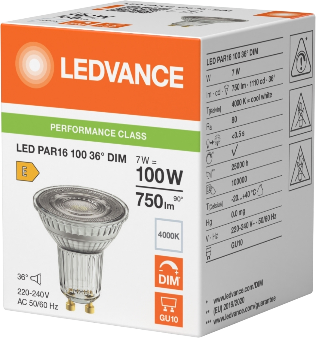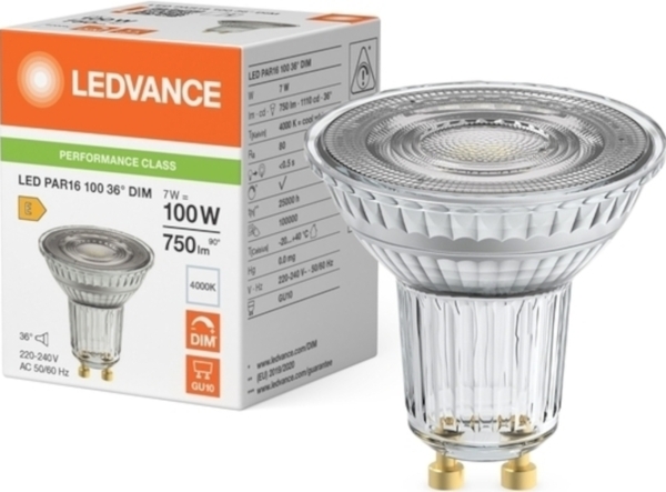 - Лампа LEDVANCE GU10 7Вт 4000K 750Лм MR16 (4099854456497)
