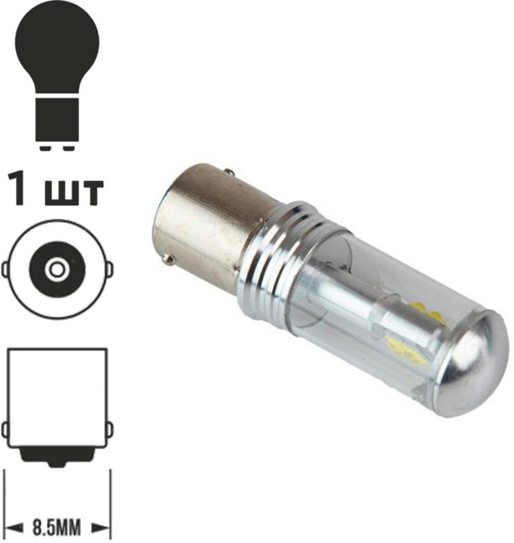 Опис Лампа PULSO габаритна LED 1156 8SMD-3030 12-24V 2W 80lm White (LP-54326)