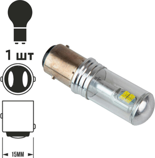 Опис Лампа PULSO габаритна LED 1157 8SMD-3030 12-24V 2W 80lm White (LP-54327)