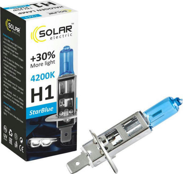 - Лампа Solar галогенова H1 12V 55W P14.5s StarBlue 4200K (1241)
