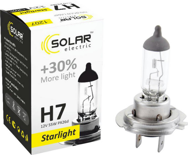 - Лампа Solar галогенова H7 12V 55W PX26d Starlight +30% (1207)
