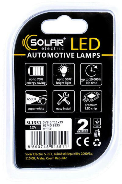 Лампа Solar LED 12V SV8.5 T11x39 6SMD Білий 2шт (SL1351)