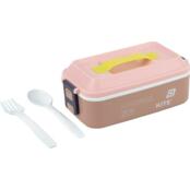 Всередині ланчбокс розділений на дві частини знімною перегородкою, яка перешкоджає змішуванню продуктів. У комплекті є пластикова ложка та виделка, зручно зафіксовані на додатковій внутрішній кришці.