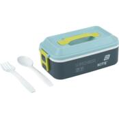 Всередині ланчбокс розділений на дві частини знімною перегородкою, яка перешкоджає змішуванню продуктів. У комплекті є пластикова ложка та виделка, зручно зафіксовані на додатковій внутрішній кришці.