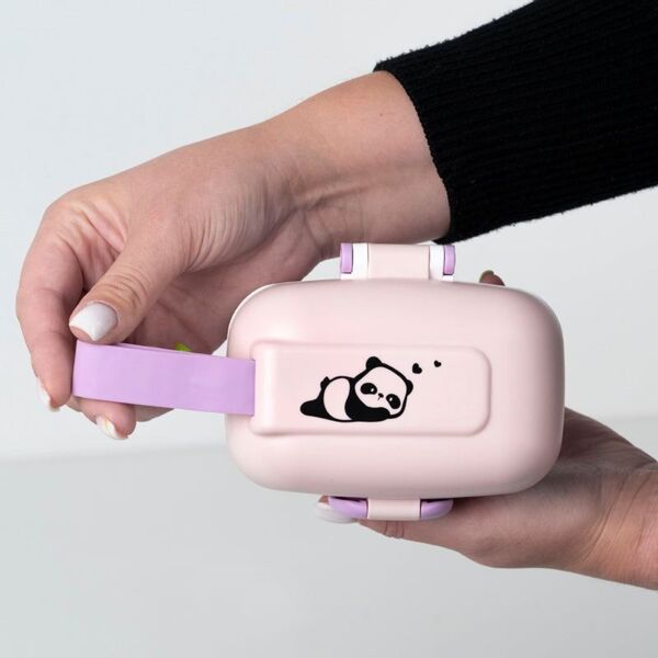 Знімна мініємність із кришечкою дозволяє зручно брати із собою соуси, насіння, приправи чи корисні добавки — усе залишається свіжим і на своєму місці. Усередині також є компактна пластикова ложечка, яка фіксується всередині. Ланчбокс має приємну на дотик матову поверхню та силіконову ручку-петлю — зручно носити в руці.