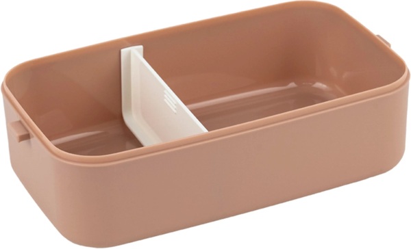 Міцна верхня кришка з ручкою забезпечує зручне перенесення та щільне закриття. Надійні бічні клямки фіксують обидві ємності разом. Всередині кожна ємність розділена на дві частини знімною перегородкою, яка перешкоджає змішуванню продуктів. У комплекті є пластикова ложка та виделка, зручно зафіксовані на додатковій внутрішній кришці.