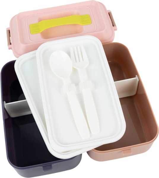 | Комплектація (можливі зміни в різних поставках) | Веделка, Додаткова кришка – 2 шт., Додатковий контейнер, Кришка, Ланч-бокс, Ложка, Перегородка – 2 шт. |