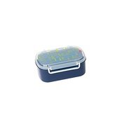 Усередині два відділи, для раціонального розподілу продуктів (овочі і фрукти, м'ясо та гарнір). Коробочка міцна і легка, розмір 17х7х11 см. Кришка герметична, легко відкривається і закривається без зайвих зусиль. Ланчбокс модного дизайну, ємність синього кольору, кришка напівпрозора із зображенням графічних стрілок. Яскрава коробочка підкреслить індивідуальний стиль вашої дитини.
