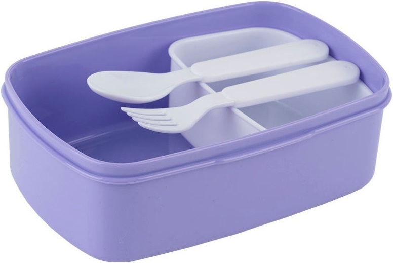 Внутрішнє наповнення включає столові прилади для комфортного перекусу: виделка, ложка та контейнер.