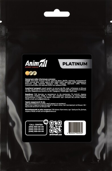 Зверніть увагу, що ласощі AnimAll Platinum не призначені як повноцінна заміна регулярного харчування вашого собаки, і повинні використовуватися тільки як додатковий корм.