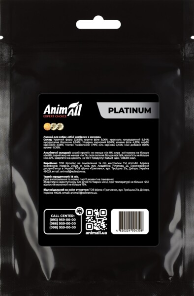 Зверніть увагу, що ласощі AnimAll Platinum не призначені як повноцінна заміна регулярного харчування вашого собаки, і повинні використовуватися тільки як додатковий корм.