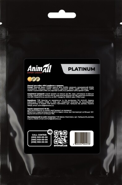 Зверніть увагу, що ласощі AnimAll Platinum не призначені як повноцінна заміна регулярного харчування вашого собаки, і повинні використовуватися тільки як додатковий корм.