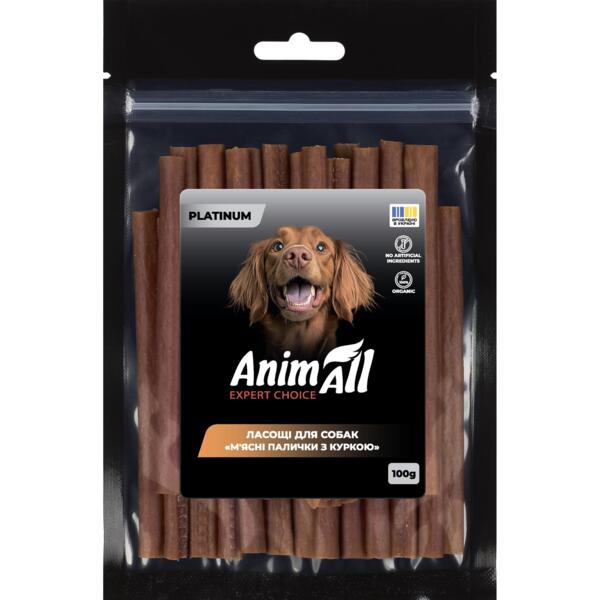 - Ласощі для собак AnimAll Platinum М'ясні палички з куркою 100 г