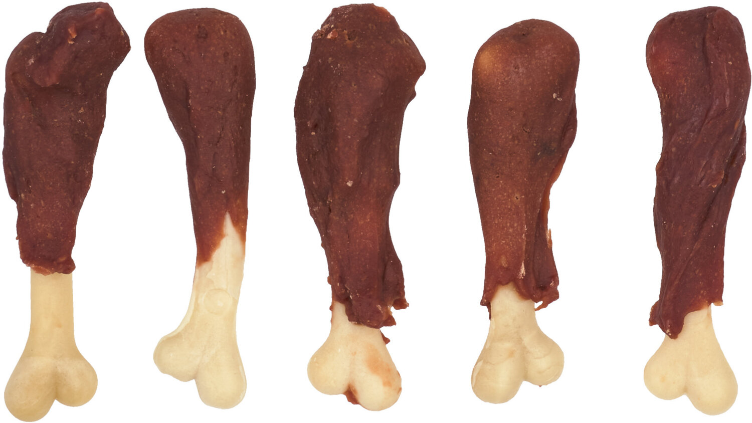 | Склад | Качка 48,5%, кальцієва кістка 44%, картопляний крохмаль 5%, гліцерин 1,75%, рослинний білок 0,5%, сіль 0,25% |