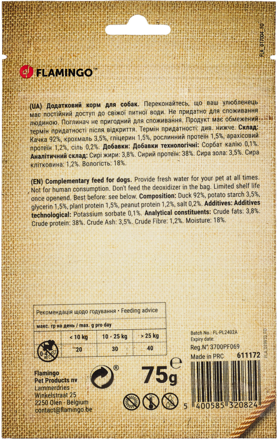- Ласощі для собак Flamingo кубики з качки 75 г