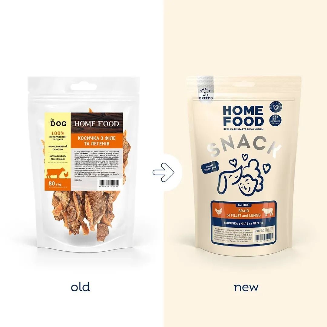 - Ласощі для собак Home Food Косичка з філе та легенів 80 г