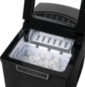 Це відмінна порція! Льодогенератор виробляє 9 кубиків за один раз, і ви самі вибираєте, чи хочете ви маленькі або великі кубики льоду. Крім того, він працює дуже швидко і може виробити перші кубики льоду за 7 хвилин.