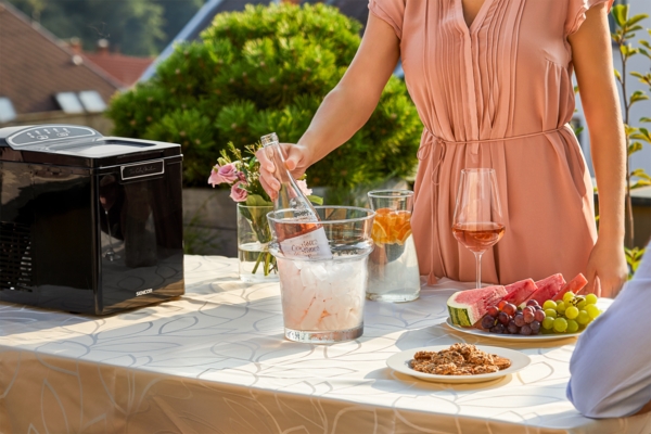 Ви можете взяти льодогенератор з собою практично куди завгодно! Він легко поміщається в автомобілі, а завдяки невеликій вазі його зручно переносити за допомогою ергономічної ручки. Таким чином, ви можете насолоджуватися холодними напоями де завгодно. Вам також не потрібно турбуватися про велике енергоспоживання.