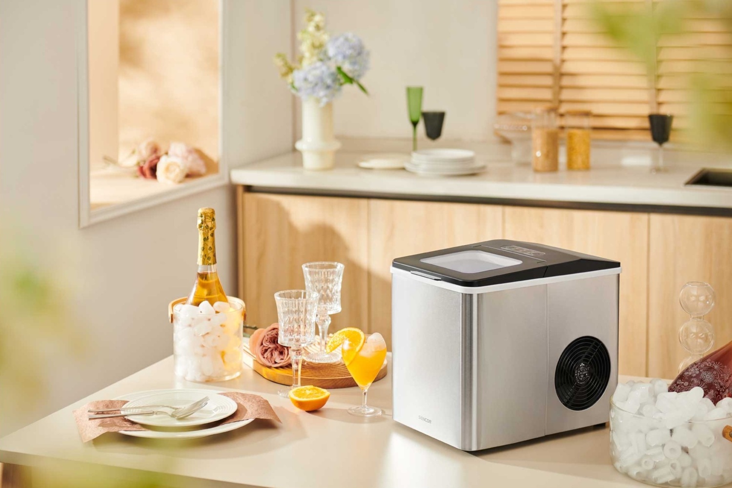 Компактний та стильний льодогенератор для невеликої кухні з міцним корпусом з нержавіючої сталі. Просто додайте 1,8 л свіжої води, натисніть кнопку та насолоджуйтесь кубиками льоду всього за 7-15 хвилин. Ідеально підходить для вечірок – виробляє до 12 кг льоду на день. Ви можете вибрати один з двох розмірів кубиків льоду у формі кулі.