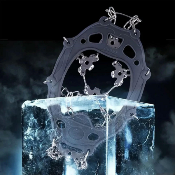 На льодоступах є 19 шипів, виготовлених із неіржавкої сталі, які не бояться корозії. Завдяки гнучкому гумовому каркасу таку модель можна носити практично з будь-яким взуттям, водночас каркас не розтягнеться від частого використання, також він не боїться морозів. Надійні ремінці забезпечують щільну посадку, тому можна не турбуватися, що льодоступи спадуть під час ходьби. Розмір: L - 41-44.