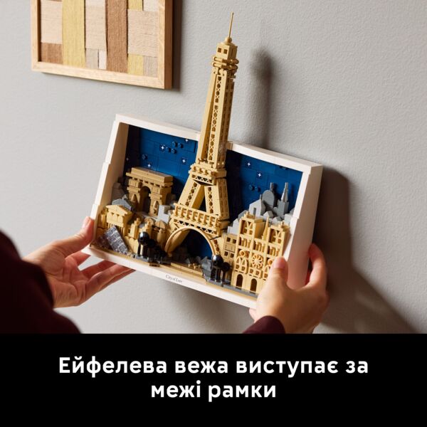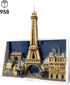 Детальний набір архітектури ідеально підходить для шанувальників Парижа. Цей преміальний набір сподобається будь-якому творчому дорослому, і стане чудовим подарунком для любителів конструкторів LEGO на день народження або свята. Ця художня репрезентація панорами Парижа, що надихає на творчість і спокій має розміри понад 30 см у висоту, 27 см у ширину і 5 см у глибину.