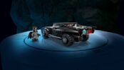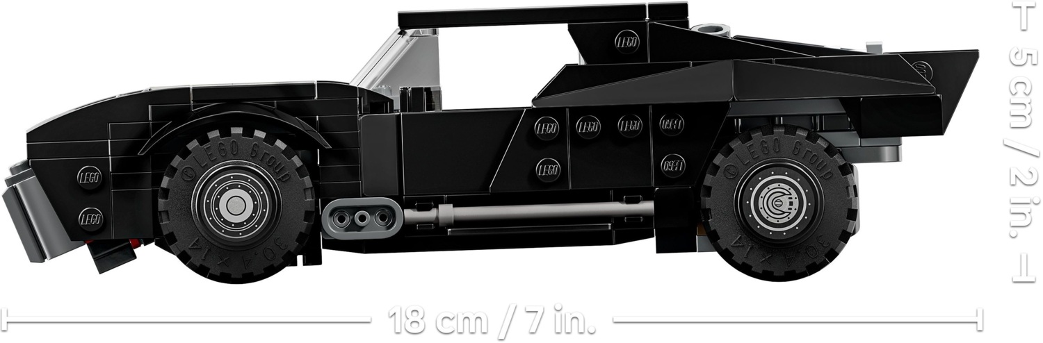 Фанати фільмів про Бетмена та супергеройського транспорту впізнають цей знаменитий Бетмобіль зі знімним капотом, деталізованою кабіною та графічними наклейками. Автомобіль має автентичне оздоблення та знімний дах, що відкриває доступ до салону, куди можна посадити мініфігурку Бетмена. Під знімним капотом прихована золота монета, присвячена 20-річчю серії.