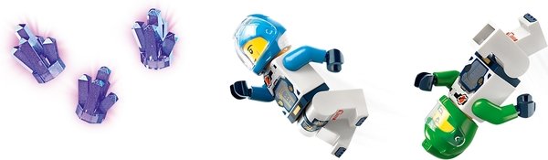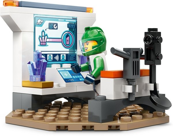 У цій космічній іграшці є все необхідне для побудови космічного корабля, кран, сцени лабораторії та розкопок, метеорит з іграшковими енергетичними кристалами, 2 мініфігурки космічного екіпажу та фігурка інопланетянина.