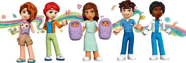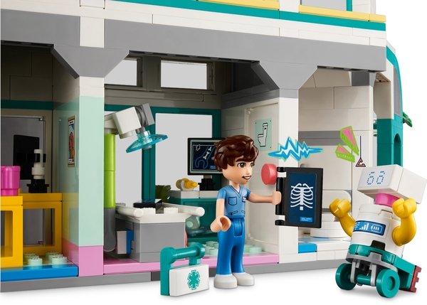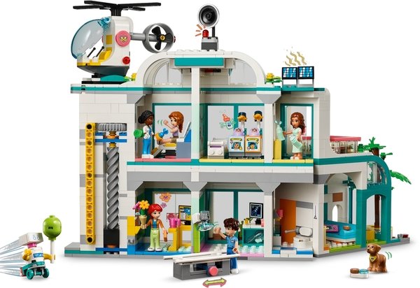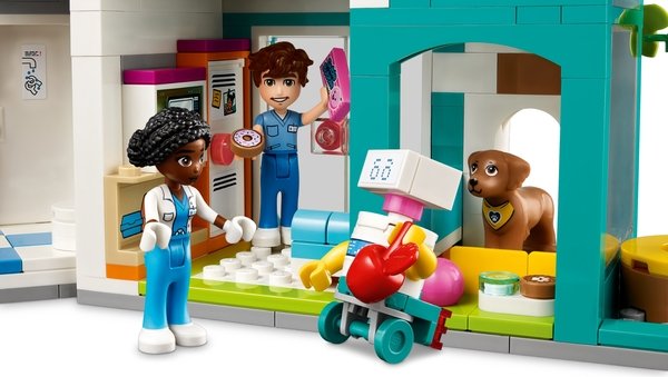 Дітям, які люблять грати в медицину та рольові ігри в доктора, є що досліджувати в цьому ігровому наборі LEGO Friends. Цей іграшковий набір лікарні стане подарунком для рольових ігор для дівчаток, хлопчиків і дітей віком від 7 років. У наборі є різні приміщення і палати, що відображають обстановку справжньої лікарні, включно з оглядовим кабінетом, пологовим відділенням, рентгенівським кабінетом і кімнатою відпочинку для співробітників. Отем, яка прибула на встановлення нового протеза руки, дізнається безліч історій. Дітям сподобається катати відвідувачів на робочому ліфті, щоб познайомитися з новонародженими в пологовому відділенні. Потім вони зможуть придумати ще більше історій в оглядовому кабінеті та кімнаті відпочинку для співробітників. Цей будівельний набір стане креативним подарунком для дітей, а в комплект входить безліч аксесуарів, 5 міні-ляльок, 2 фігурки малюків і фігурка собаки.