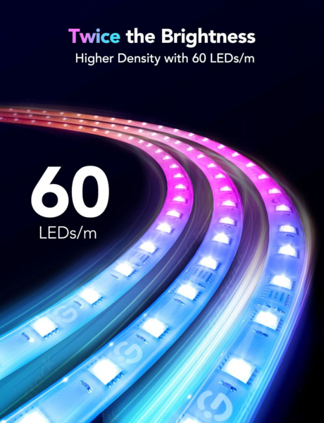 На один метр припадає 60 світлодіодів, що дає змогу досягти чіткішого відображення широкого спектра кольорів і ефектів на вашій світловій стрічці.