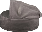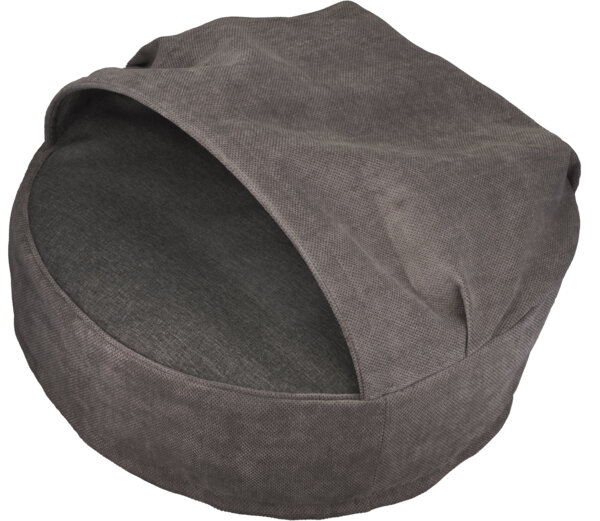 Виконаний із міцної тканини. Він має вшитий об’ємний капюшон, що створює відчуття затишної схованки. Матеріали легко перуться, швидко сохнуть, не втрачають форму й колір, а також чудово зберігають тепло, пропускають повітря та не викликають алергії. Цей лежак стане справжнім фаворитом для улюбленців, які люблять закутуватись у ковдри, незалежно від їхнього розміру.