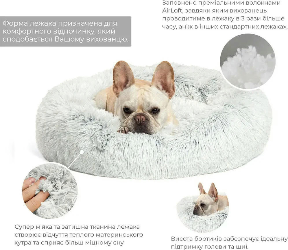 Best Friends Donut Shag Taupe – м'яке місце для собак, яке розслаблює та сприяє кращому сну вихованців, підтримує суглоби та створює самозігріваючий ефект. Цей лежак продуманий до дрібниць. Виготовлений з міцного веганського нейлону з наповнювачем Air Loft, який створює ефект перебування в м’якому, комфортному, повітряному та розкішному коконі. Основа ліжка виконана зі стійкого до бруду та вологи матеріалу, тому в разі будь-яких інцидентів підлога залишиться чистою. Ліжко подарує вихованцеві здоровий та глибокий сон і стане ідеальним місцем для денного відпочинку. Лежак забезпечує комфортне розташування шиї, суглобів та підтримку м’язів. Можна прати в пральній машині.