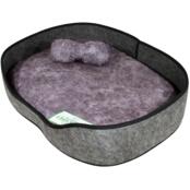 Закруглена форма створює компактний вигляд і практичність вже тільки від конструкції та форми лежачка. Немає прямих кутів, які так заважають при будь-яких переміщеннях в просторі оселі. Завищений твердий борт основи додає захисту та затишку під час відпочинку. Матрац на блискавці. Наповнювач можна змінювати та додавати. Іграшка-бонус в тон матраца підкреслює витриманий стиль в усьому. Така м'якенька кісточка-бантик цікава і в іграх, і під час сну, коли малеча обіймає її та спокійно відпочиває.