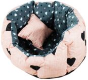 - Привабливий принт і дуо - рішення – зима+літо. Дві тканини – Фліс та Бязь, як день і ніч – різні, проте в синтезі розв’язують проблеми зони відпочинку упродовж всього року. Флісова поверхня з серцями на графітовому тлі - м’яка, ніжна, тепленька. Вона огортає домашнє диво з хвостиком, оберігає від протягів та низьких температур і на контрасті. Бязь – бавовняне полотно з щільним плетінням та стійке до щоденної, активної експлуатації – ефективно рятує від літньої спеки та зберігає комфортну температуру тіла.