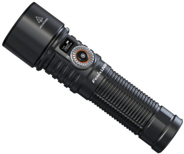 У ліхтарі Fenix LD45R можна регулювати ширину променя обертанням перемикача однією рукою. На OLED-дисплеї відображається основна інформація: кількість заряду, поточний режим роботи та яскравість, яка може сягати 2800 лм. Усього доступно 7 режимів з дальністю променя до 480 м. У комплекті є акумулятор 5000 мАгод. Алюмінієвий корпус є на 100% герметичним.