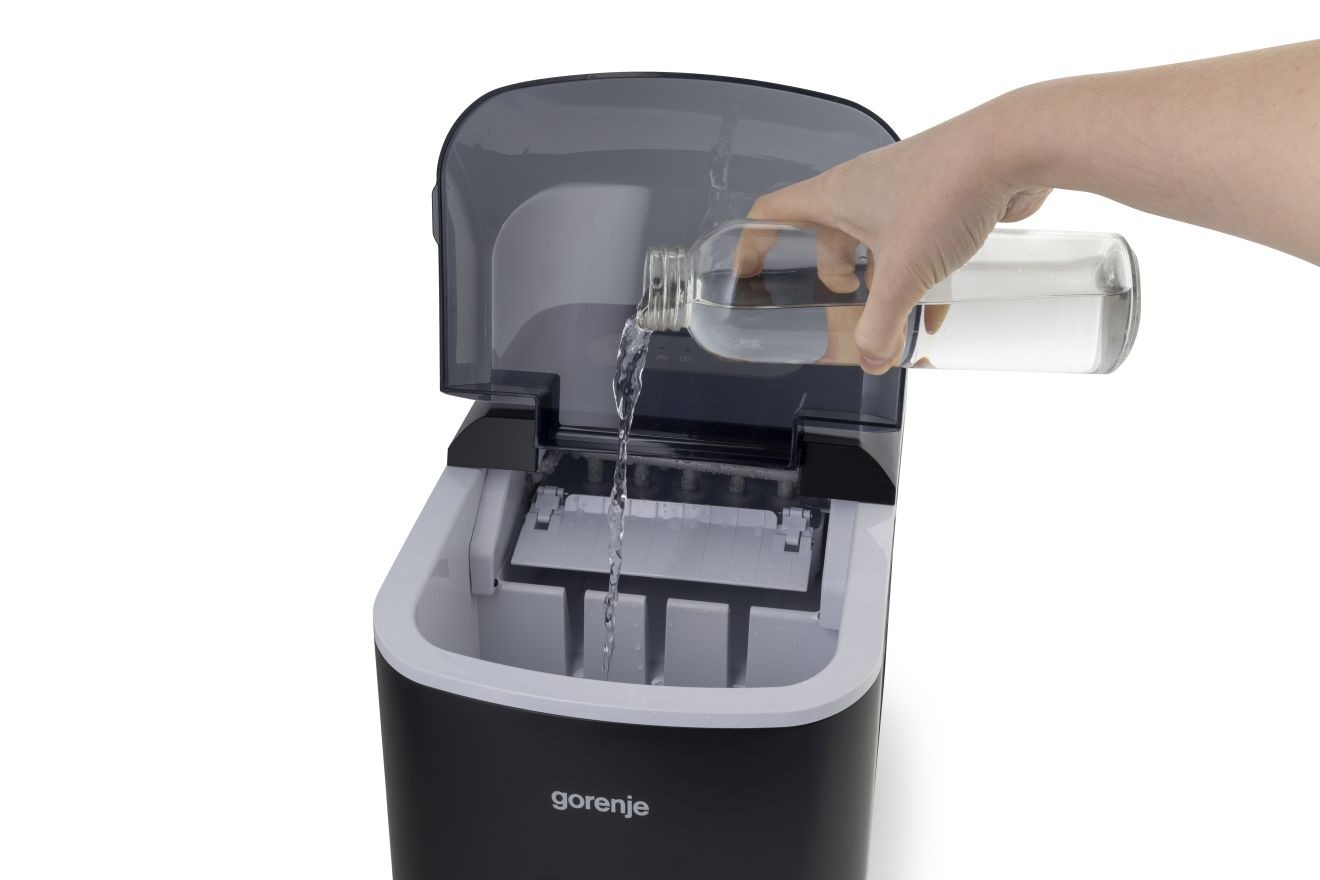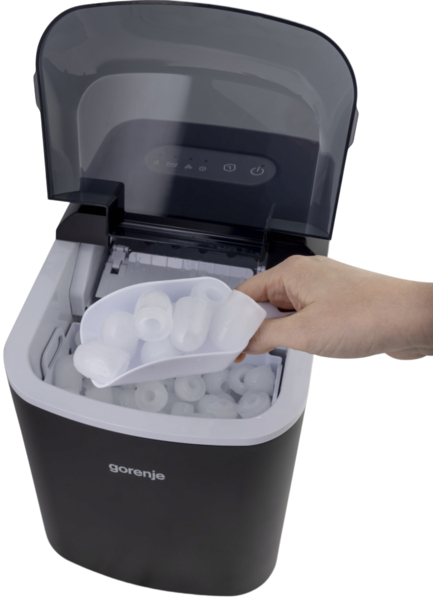 Для отримання свіжого льоду просто наповніть резервуар для води до позначки, виберіть розмір (малий або великий), і пристрій автоматично почне виробляти кубики льоду. Льодогенератор Gorenje легкий та портативний, тому ідеально підходить для використання вдома, в кемпінгу або в офісі.