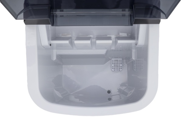 Резервуар для води вміщує до 2,1 літра. Індикатор рівня льоду та води повідомить вам, чи потрібно наповнити резервуар або кошик для льоду вже повний. Льодогенератор легко чистити. Він має зливний отвір у нижній частині, що полегшує його спорожнення. Потім потрібно лише протерти внутрішню частину сухою ганчіркою.